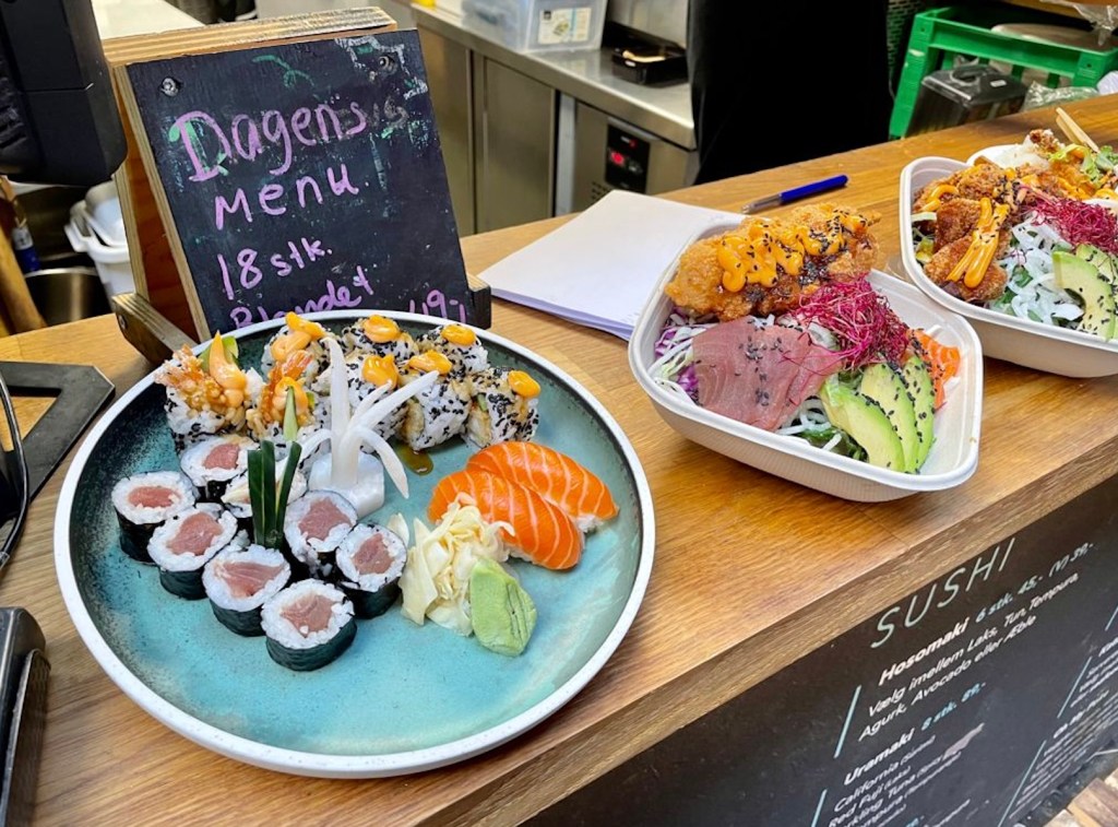 Die Preise sind zwar immer noch höher als in Deutschland aber im Vergleich zu einem Restaurant hier in Dänemark deutlich verträglicher. Ich hatte ein Hähnchencurry mit Reis und habe dafür umgerechnet 8 Euro gezahlt. Das war wirklich vollkommen in Ordnung. Bei schönem Wetter gibt es die Möglichkeit draußen zu essen. Es ist auch nicht notwendig dort Essen und Trinken zu kaufen, denn es ist erlaubt Mitgebrachtes zu verzehren. Meine Empfehlung eine Flasche Wein im nächstgelegenen Supermarkt zu kaufen und sich in der Halle etwas zu Essen zu gönnen, denn ein Glas Wein kostet dort ca. 10 Euro. 😛