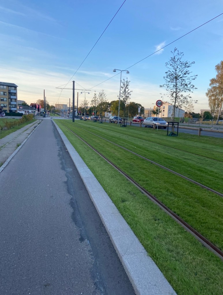 Die Straßenbahnstrecke, die momentan noch gebaut wird, ist fast überall begrünt, wie ihr auf dem Foto oben sehen könnt. Ein weiterer Pluspunkt für Odense.
