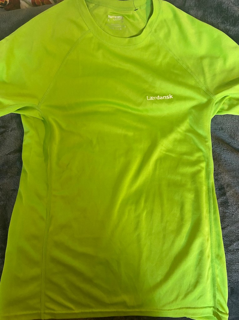 dänisch Unterricht läuft super! Ich lerne momentan, neben der Uni, ca. eine Stunde am Tag dänisch. Zusätzlich habe ich 7 Stunden dänisch Unterricht in der Woche. Gestern in der Sprachschule habe ich ein Lauf T-shirt gescheckt bekommen. Einfach so 😛 Die Schule hatte noch so viele übrig und hat meiner Klasse die T-shirt geschenkt (siehe Foto unten).