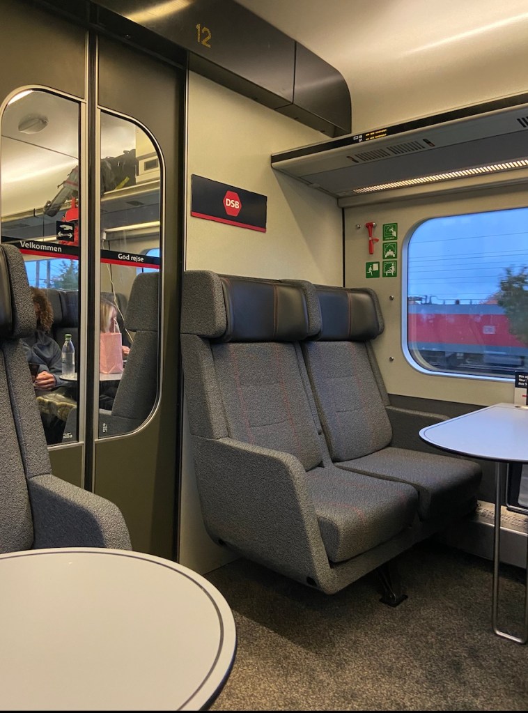 Wie schon oben erwähnt, bin ich auf dem Hinweg mit dem Zug gefahren. Unten seht ihr ein Foto von dem Sitzplatz wo ich saß. Der Zug war sauber und sehr bequem und trotz Stoßzeit nicht voll. Pünktlich waren wir auch.
