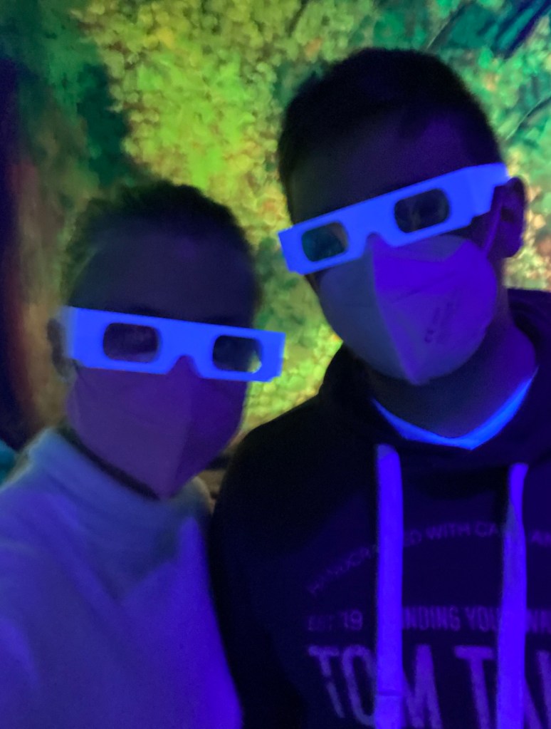Am letzten Abend war ich mit meiner Familie noch beim 3D-Neonlicht-Minigolf. Leider ist das Bild von meinem Bruder und mir leicht verwackelt.