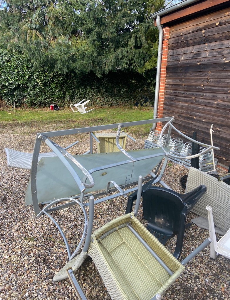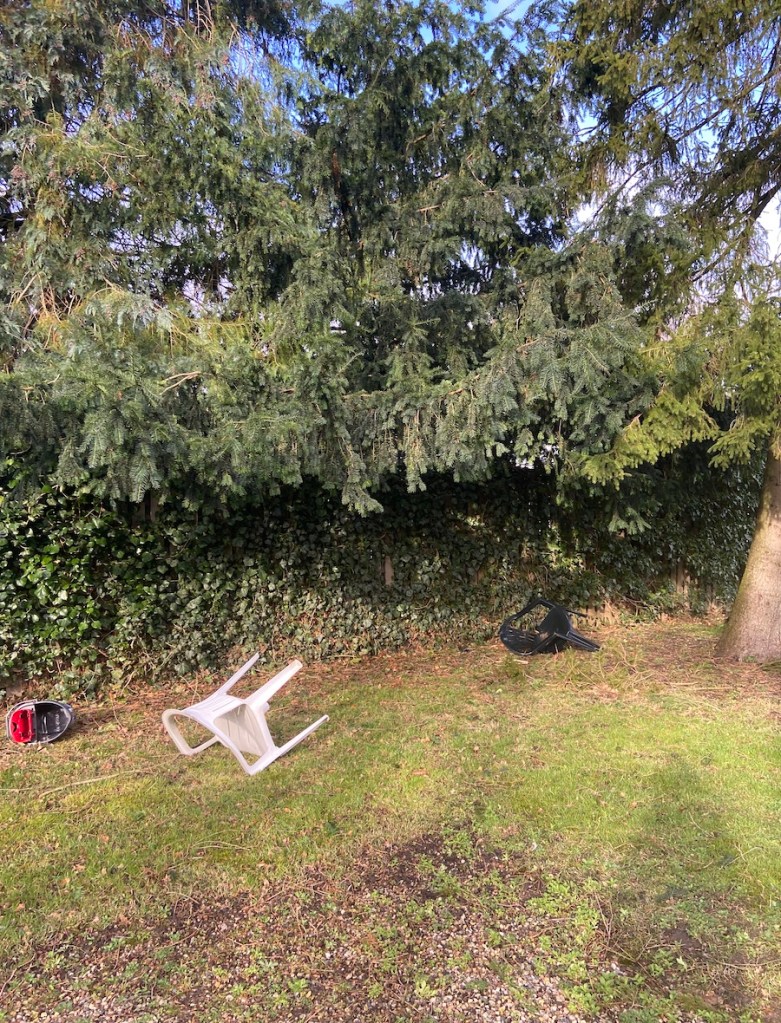 Fangen wir mal vor zwei Wochen an, wo ich noch im Bett lag und draußen der Sturm wütete, den ihr in Deutschland ja auch eher mehr als weniger zu spüren bekommen habt. Bei uns im Garten (wie ihr unten auf den Fotos sehen könnt) hat es zum Beispiel den Glastisch komplett umgehauen. Zum Glück ist er nicht kaputt gegangen.