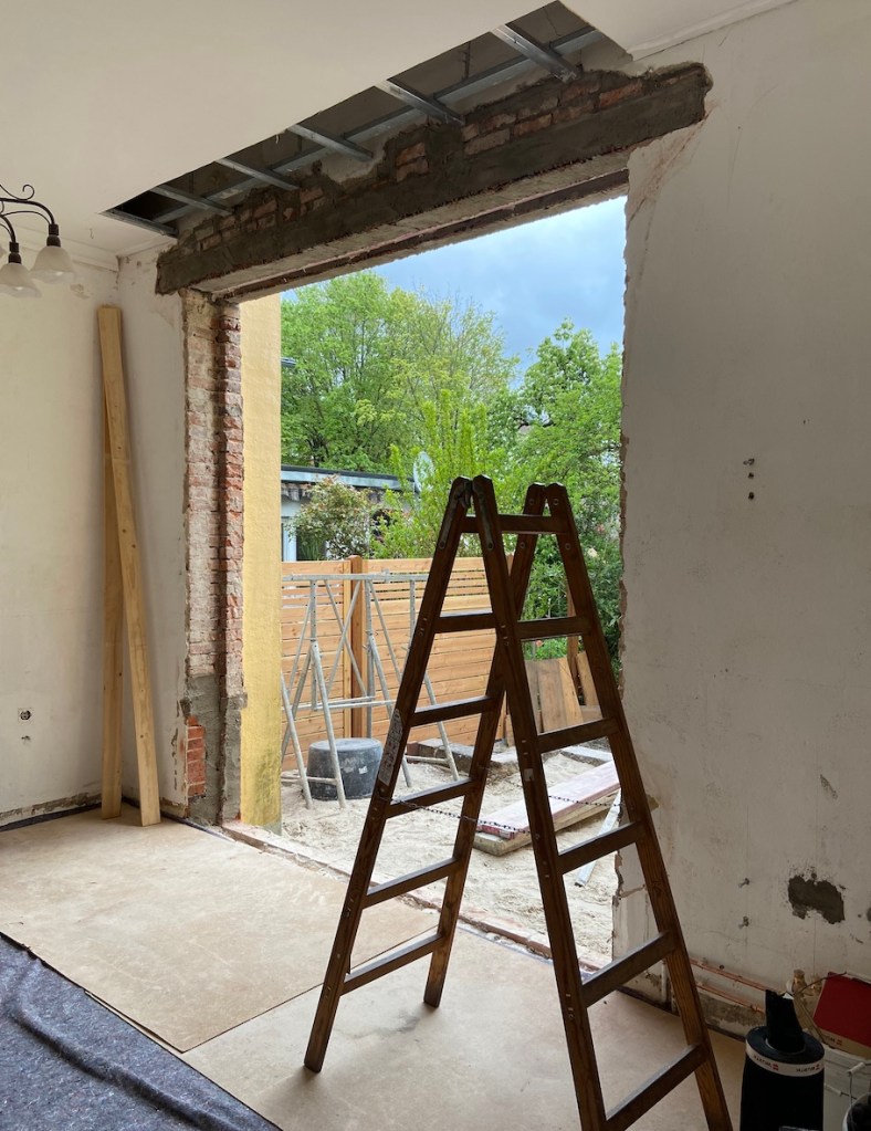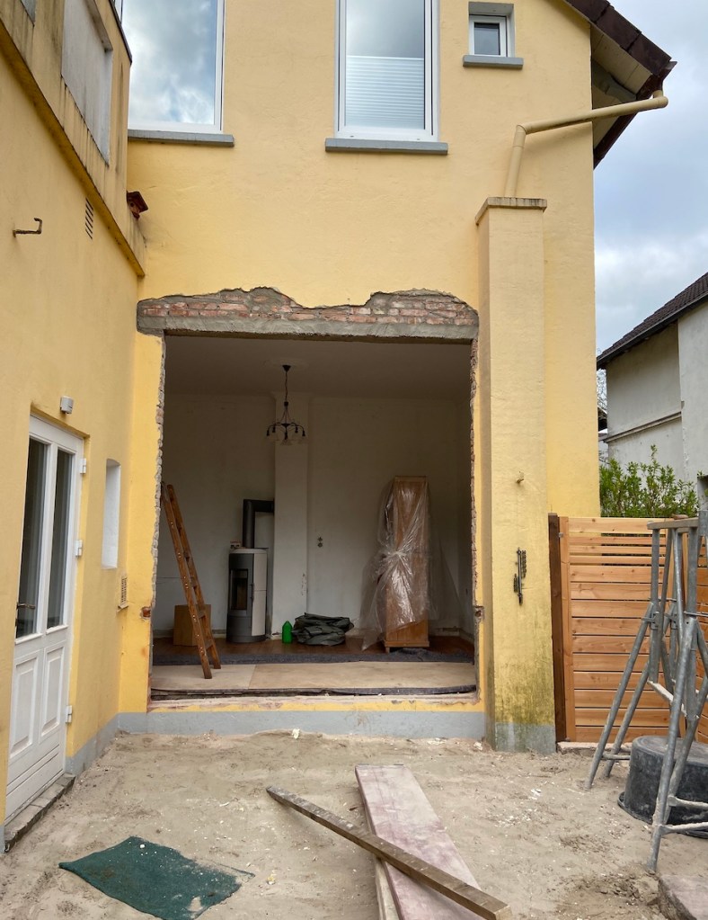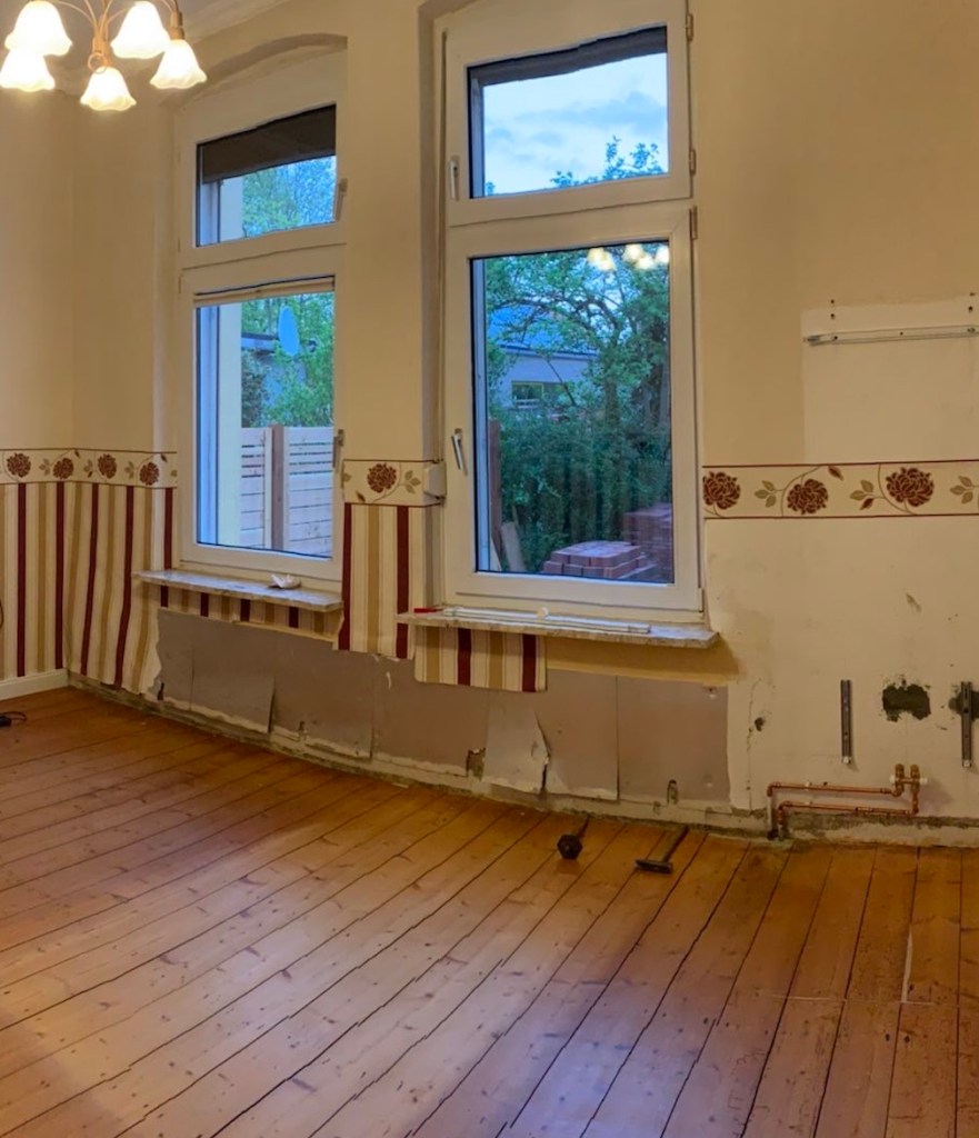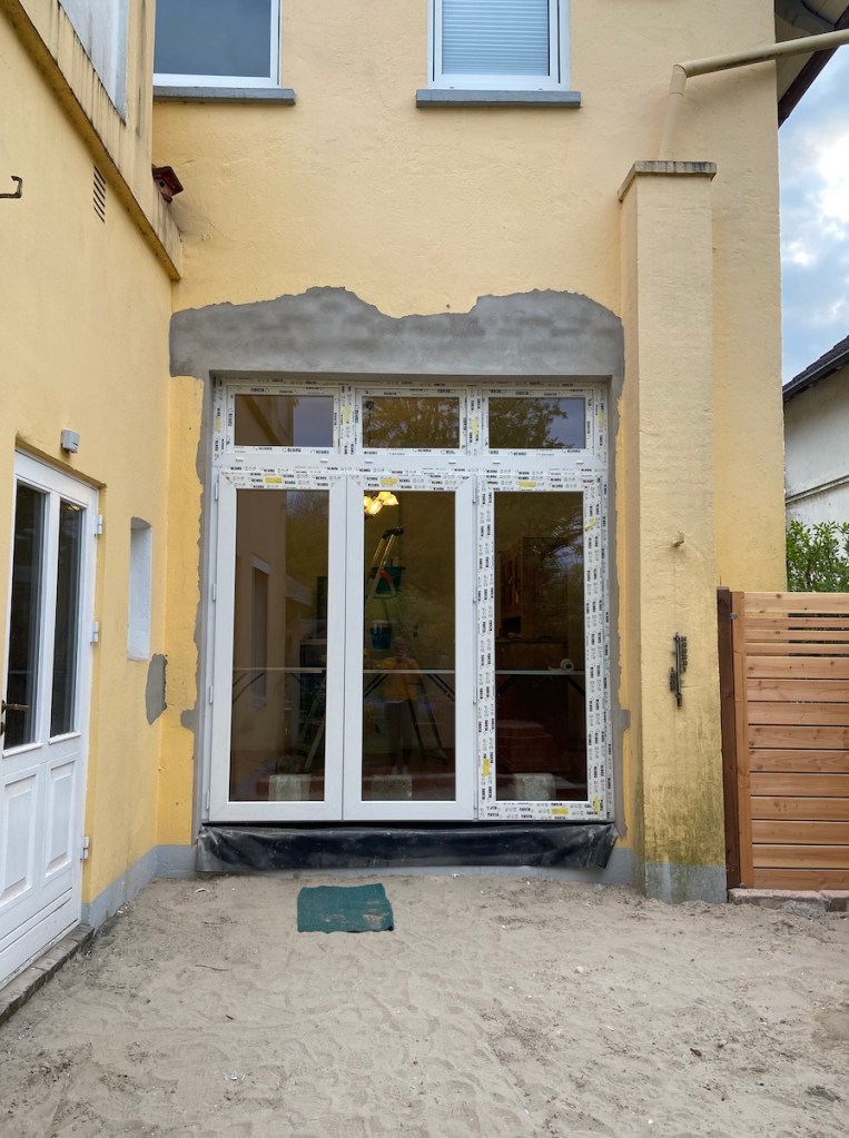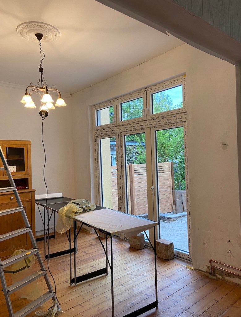 Letzten Mittwoch habe ich meine Mutter zu Hause überrascht. Sie hatte keine Ahnung, dass ich nach Oldenburg kommen wollte. Sie hat sich natürlich tierisch gefreut. Wer die Eriksen`s und gerade meine Mutter kennt, weiß, dass sie immer ein Projekt braucht. Naja, momentan ist das Projekt neue Terrassentüren in den Garten hinein. Unten seht ihr einige Bilder, allerdings noch keine endgültigen, da wir nicht alles geschafft haben. Das war auch mein Hauptgrund wieso ich nach Oldenburg gekommen bin. Ich wollte meiner Mutter ein wenig helfe. Wir haben also die letzten vier Tage gestrichen, tapeziert und und und… Morgen tapezieren wir ebenfalls noch ein bisschen und ich schleife vermutlich noch den Boden ab.