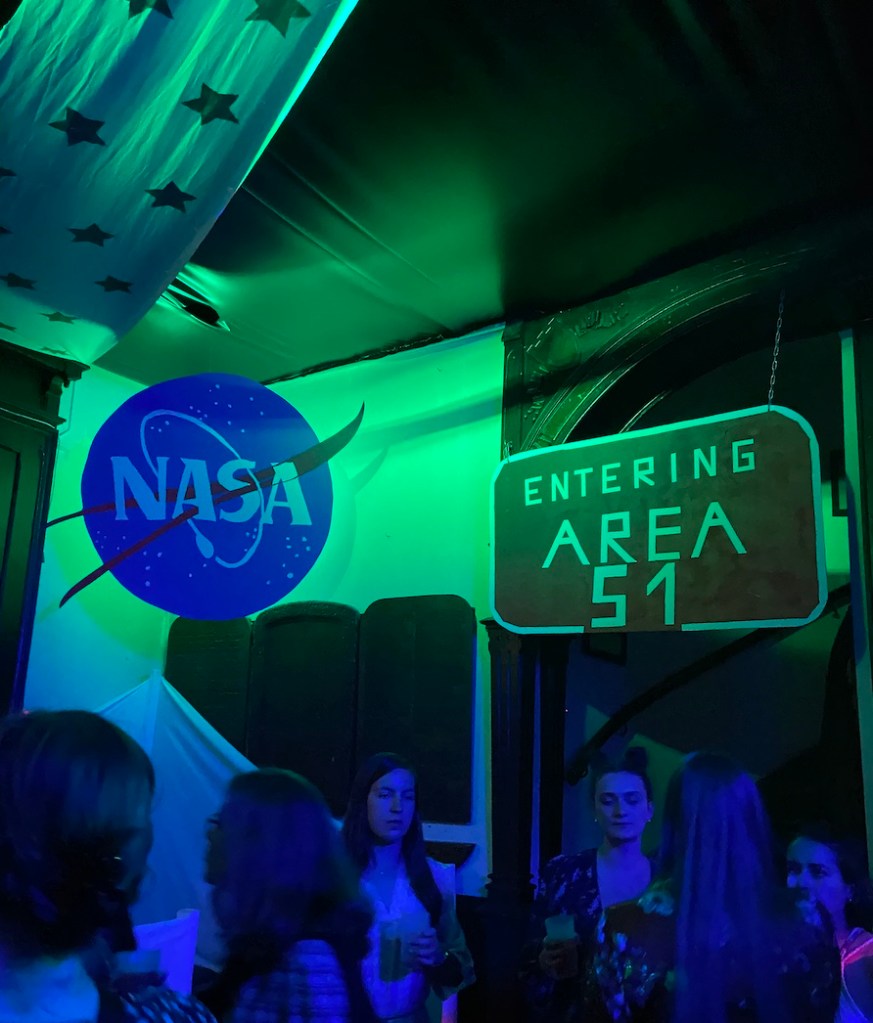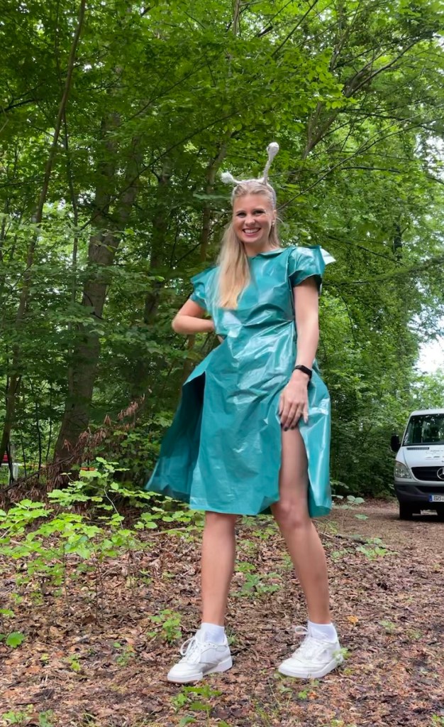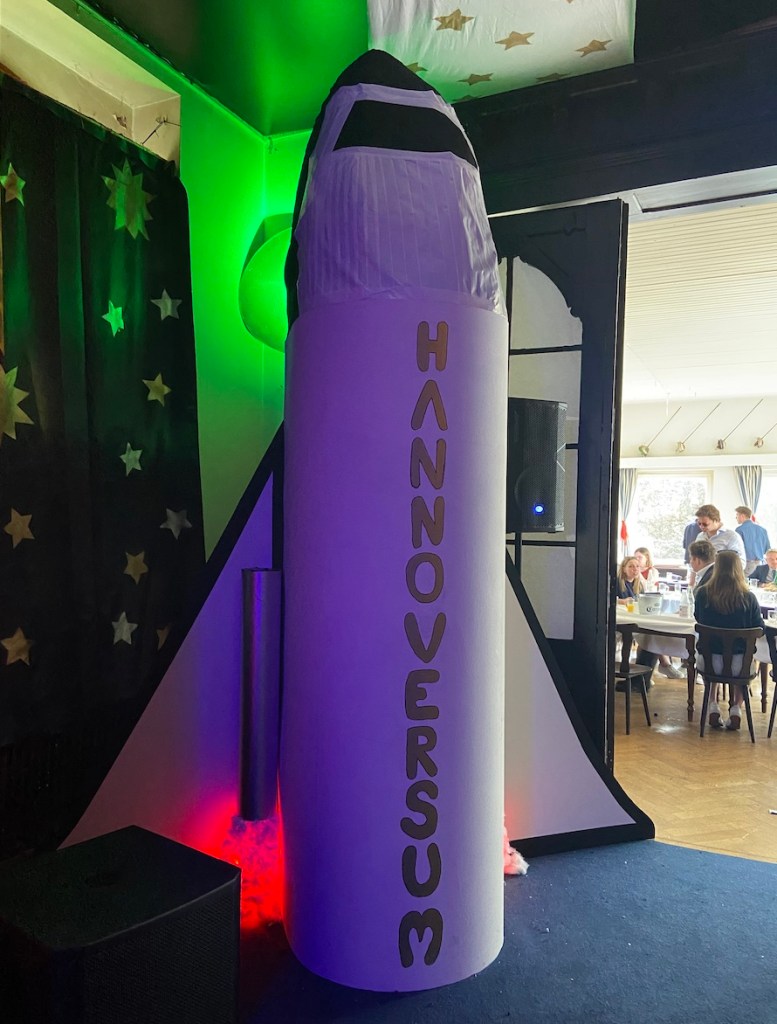Am nächsten Tag mussten wir früh aufstehen, Treffpunkt für den Start der Autorallye war 11 Uhr am Bismarckturm in Göttingen. Vorher haben wir noch ausgiebig gefrühstückt und unsere Kostüme fertig gemacht. Thema war Weltall/Raumfahrt… ich bin als grüner Alien gegangen. Und ja, das ist einfach eine grüne Mülltüte, die ein wenig zurecht geschnitten worden ist. 😀