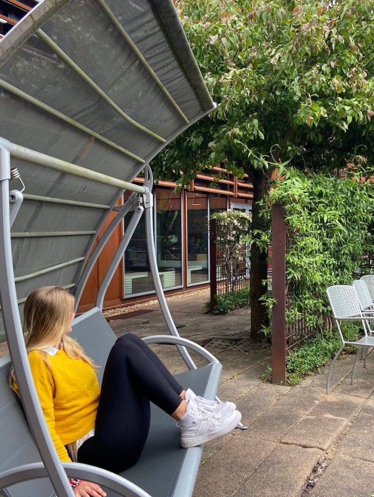 Lernen tue ich momentan sehr viel in der Uni mit Chiara und Elle. Wir haben sogar einen Platz gefunden bei dem es eine Hollywoodschaukel in einem kleinen Garten gibt. Diese kleinen Gärten gibt es überall in der Uni, nur die Hollywoodschaukel ist neu.