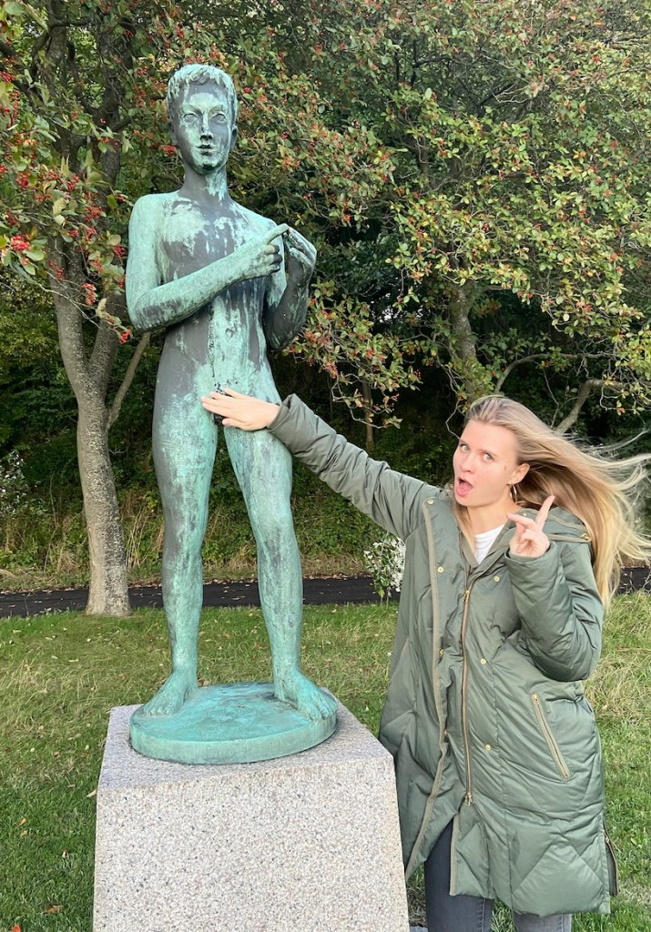 Auf die Empfehlung von meinem Chef haben wir das Leibgericht vom König Frederik im Colosseum in Sønderborg gegessen. Pommes, Kartoffeln, Zwiebeln, Eier und rote Beete als Beilagen und nach einen riesige Portion Fleisch. Super lecker, aber zu viel Fleisch. Aber probiert es selber mal. Nach dem schweren Abendessen brauchten wir noch einen Verdauungsspaziergang und sind auf folgende Statuen gestoßen: