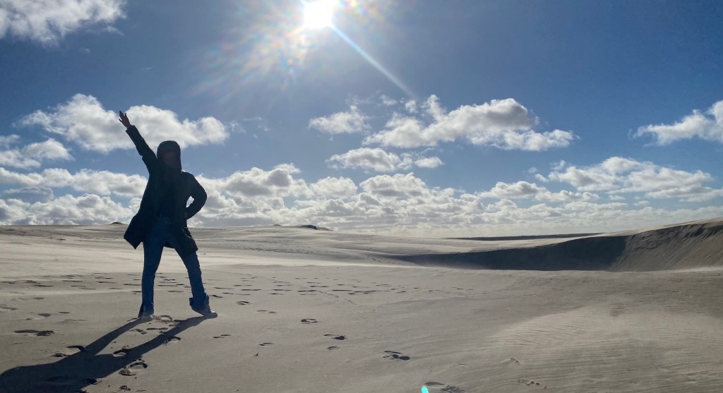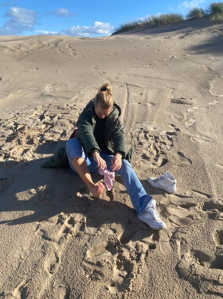 Um es besonders gemütlich zu machen, habe ich extra VIELE Kerzen und eine Lichterkette mitgenommen. Dadurch kam abends so richtig das dänische HYGGE Gefühl zum Vorschein. Am zweiten Tag haben wir uns auf gemacht, die größte Wanderdüne Nordeuropas zu „besteigen“. Ca. 15 Minuten südlich von Skagen liegt diese Düne. Sie bewegt sich 15 Meter pro Jahr und ist in den letzten 110 Jahren 1500 Meter gewandert. Die Düne hat eine beachtliche Größe von über einem km2!
